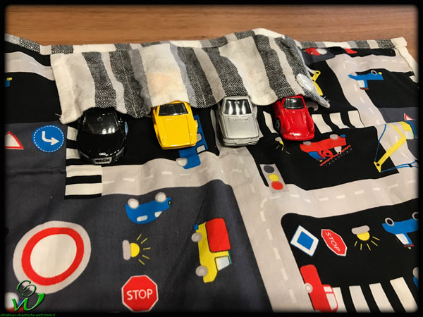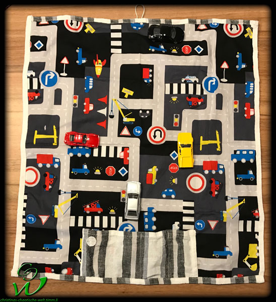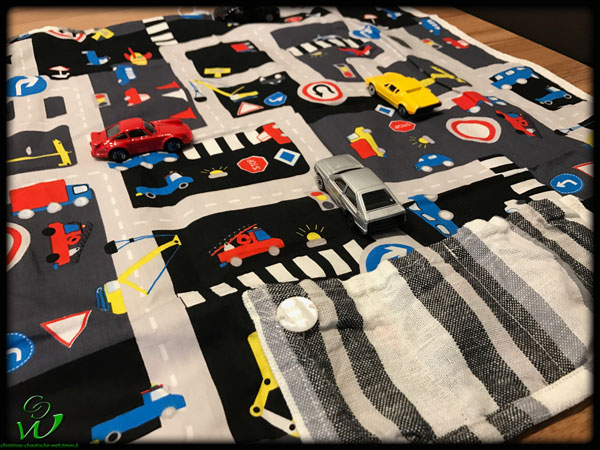 Einen Autostraßenstoff (bekommt man auf DaWanda oder Buttinette)