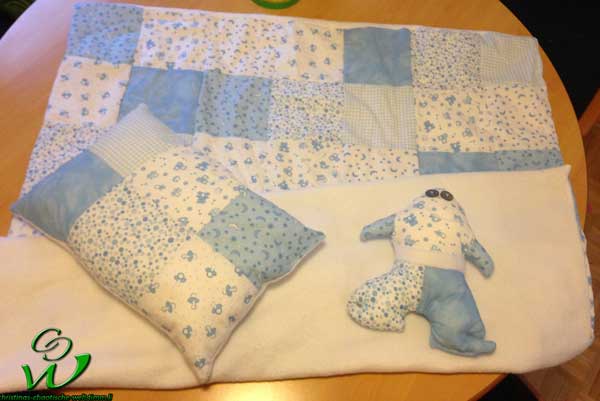 Ein paar so süße Patchwork Babysets habe ich schon gemacht und die nächsten kommen auch bald. Meine erste Baby Patchworkdecke, trieb mich fast in den Wahnsinn. 10x10cm kleine Fleckchen das mal 100… ich brauchte ewig. ich umging sogar 20 Stück in dem ich einfach zwei Fleecstreifen einnähte.