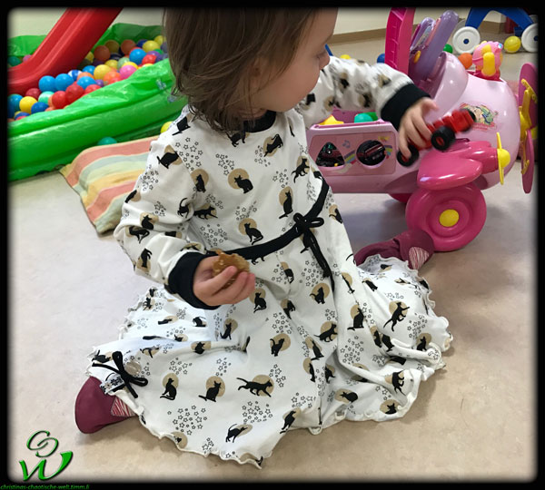 Mein Mäuschen liebt ihre beiden neue Kleider, vor allem das mit den Katzen natürlich.
