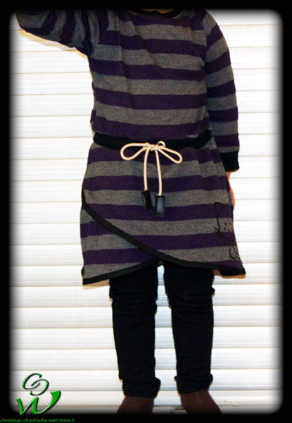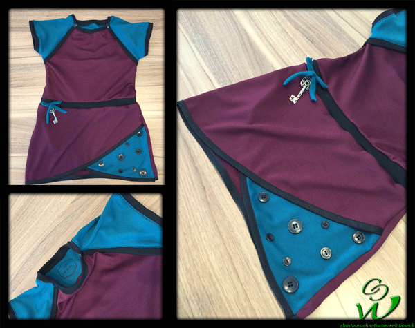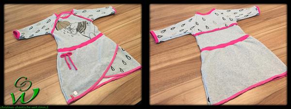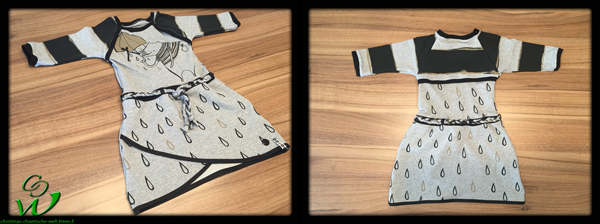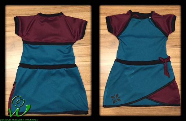 Ich machte ein Kurzarm Kleidchen mit Wickelrock und Fake Bolero. Ich muss nochmal erwähnen das ich totaler Anfänger im Bezug auf Jersey Kleidchen bin und ich war begeistert wie einfach es war. Nur leider ist klar, wenn man spät Abends noch näht und meint „ach das mach ich noch fertig“ man es UNTER KEINEN UMSTÄNDEN noch schnell fertig machen soll, denn dann kommt das dabei raus: