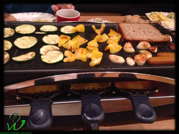 Ganz nebenbei, da wir so viele Leute bei beiden Malen waren, haben wir immer mit zwei Raclettgriller gearbeitet und wir nicht-Tieresser hatten sogar unseren eigenen bzw gabs einen für Fleisch und Fisch und einen für Gemüse –haben ja die anderen auch vom Gemüse gegessen nicht nur wir-.