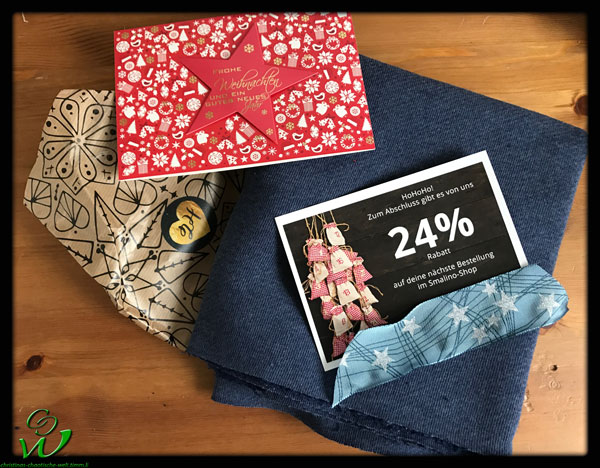 – und zusätzlich zu einem Stoff am 24 noch einen Rabattgutschein für die nächste Bestellung im Store