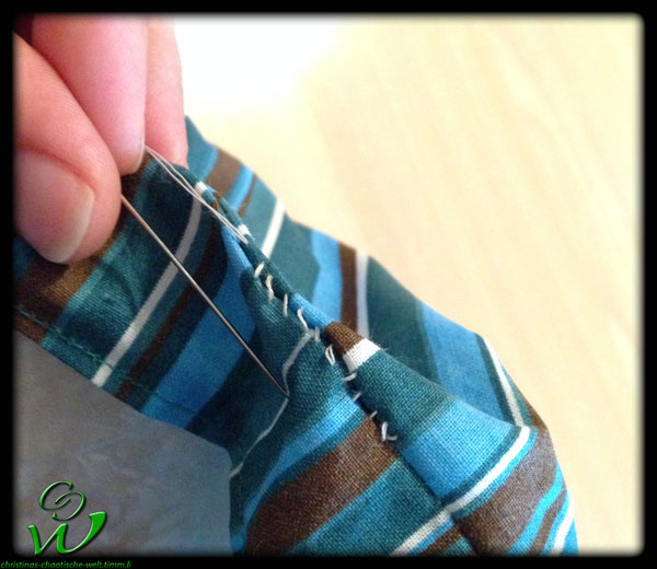 Mit meinem Lieblingsstich einfach den Stoff auf der Innenseite zusammennähen. Unbedingt eine Wendeöffnung lassen.