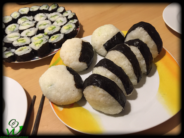 Nun hier beschreib ich euch wie ich Onigiri machte oder auf deutsch Reisbällchen.
